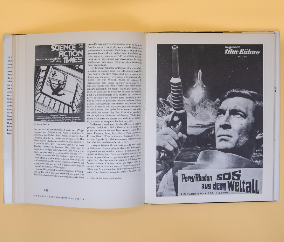 Dieter Wuckel a consacré ce livre à l'évolution de la Science fiction, principalement dans la littérature, mais en établissant des passerelles en direction des autres arts et supports. Il évoque les grands noms du genre, Jules Verne, H. G. Wells, mais aussi les rapports que le genre entretient avec l’évolution des sociétés. Belle reliure toilée illustrée sous une jaquette